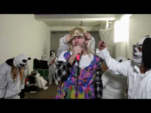 Now, back to LCD Soundsystem, the cool band of the moment. This is the second one-take video I’ve seen this week (Slow Club’s is the other), showing that the OK Go ripple effect is in full swing. The clip begins amusingly enough, with the aforementioned singer who can’t sing standing in front of a test pattern screen, trying to sing while guys in animal costumes (dogs? Panda bears?) pester Murphy, Al Doyle (at least I think it’s Doyle) and Nancy Whang as they try to sing along to the track. Pretty soon, the inappropriate touching gives way to truly obnoxious behavior. Nancy gets egged, but not before getting a bullhorn blasted in her ear. Doyle gets hit with fire extinguishers, stripped and has trash dumped on him. Murphy and Whang are duct taped together and written on with markers. The subtext is not hard to read: LCD Soundsystem are the drunk girls, and the guys in suits are frat boy douchebags. The video ends with everyone partying and completely defacing the set.